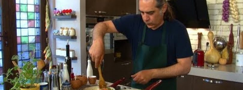 Program host Sargis Mkrtchyan is making delicious Tapakac Lyard.